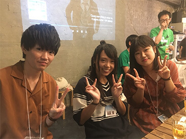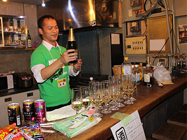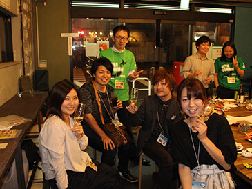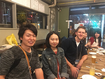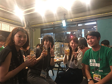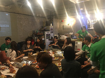 部屋物語のスタッフも一緒になってお酒を酌み交わし、日本語・英語・中国語が飛び交う談笑タイム。